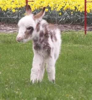 Miniature Donkey Information Miniature donkeys are native to the Mediterranean islands of Sicily and Sardinia. There are over 40,000 registered miniature donkeys in the United States with importations no longer allowed. As you can see by the small numbers, the breed is still needing to be preserved and cultivated. The miniature donkey is a true breed and is not bred down. The miniature donkey must be under 36" or less at the shoulder. The average height for them is 34", and the smaller they are the more valuable they become. Miniature donkeys have very long life-spans living to 25-35 years of age. The most common color for the miniature donkey is a gray dun with a black "cross" running over their shoulder and down their back. Donkeys do come in colors other than gray such as spotted, brown, black, sorrel. Black and red, however, are very uncommon colors and highly prized in breeding programs. Miniature Donkeys eat one to two flakes of good quality Coastal hay per day. Grains are not often needed by donkeys except for weanlings, pregnant, or nursing jennets A trace mineral supplement should be made available to your donkey at all times. Donkeys love treats such as breads, carrots, and apples. Historically, donkeys are used to sparse food supplies and should not be overfed. Your donkey should have good, clean water 24 hours a day. Donkeys need a three sided loafing shed for protection against the cold north winds of winter and the hot sun of summer. A single miniature donkey needs 1/2 to 1 acre of pasture. Miniature donkeys generally get along with goats, sheep, horses, llamas. Miniature donkeys are one of the most affectionate and friendly animals of their kind. Miniature donkeys are tame, gentle, loyal, playful, and affectionate...the perfect pet. Miniature donkeys are very social animals who like to give and receive a great deal of attention. Miniature donkeys need annual vaccinations for Eastern and Western Encephalomyelitis, Tetanus, Rhinopneumonitis, Strangles, and influenza & the West Nile Vacc. If it is the first time the donkey is receiving the vacc. they will need a booster 3 weeks after the first and then annually there after. Hoof Care should be performed every eight to ten weeks depending, of course, on how rapidly your donkeys hooves grow. Terrain and diet are big factors in hoof growth. Worming should be done every 2 to 3 months. "Jack" is a male donkey that has not been castrated. "Jennet", or "Jenny" as some people say, is a female donkey. "Foal" is a young donkey from birth to the time that they are weaned from their mothers "Weanling" is a young donkey who has been separated, or weaned, from its mother. "Gelding" is a male donkey that has been castrated so that it cannot reproduce. The gestation period of the miniature donkey is 11 to 13 months. The foal averages between 20 to 30 pounds at birth. Foals are up nursing within 30 minutes of birth. Foals are normally weaned between 4 and 6 months. Jennets SHOULD NOT be bred until at least 3years of age. Miniature donkeys are not fully grown until 3 years of age. Everyone who meets a miniature donkey wants one of their own!