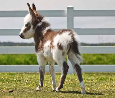32.25" Brown Jennet Jitterbug sold at one day of age. This tiny jennet is one of the best foals I have ever raised and if I had time to evaluate her I never would have sold her. But I am excited she has a wonderful new owner that can't wait to get her. Jitterbug is what I consider an ideal foal. I'm proud that she is a product of my two herdsires Napoleon and Sparkplug. She is her mother's first foal and I will definitely cross her with Napoleon again. Photos at twelve days of age.