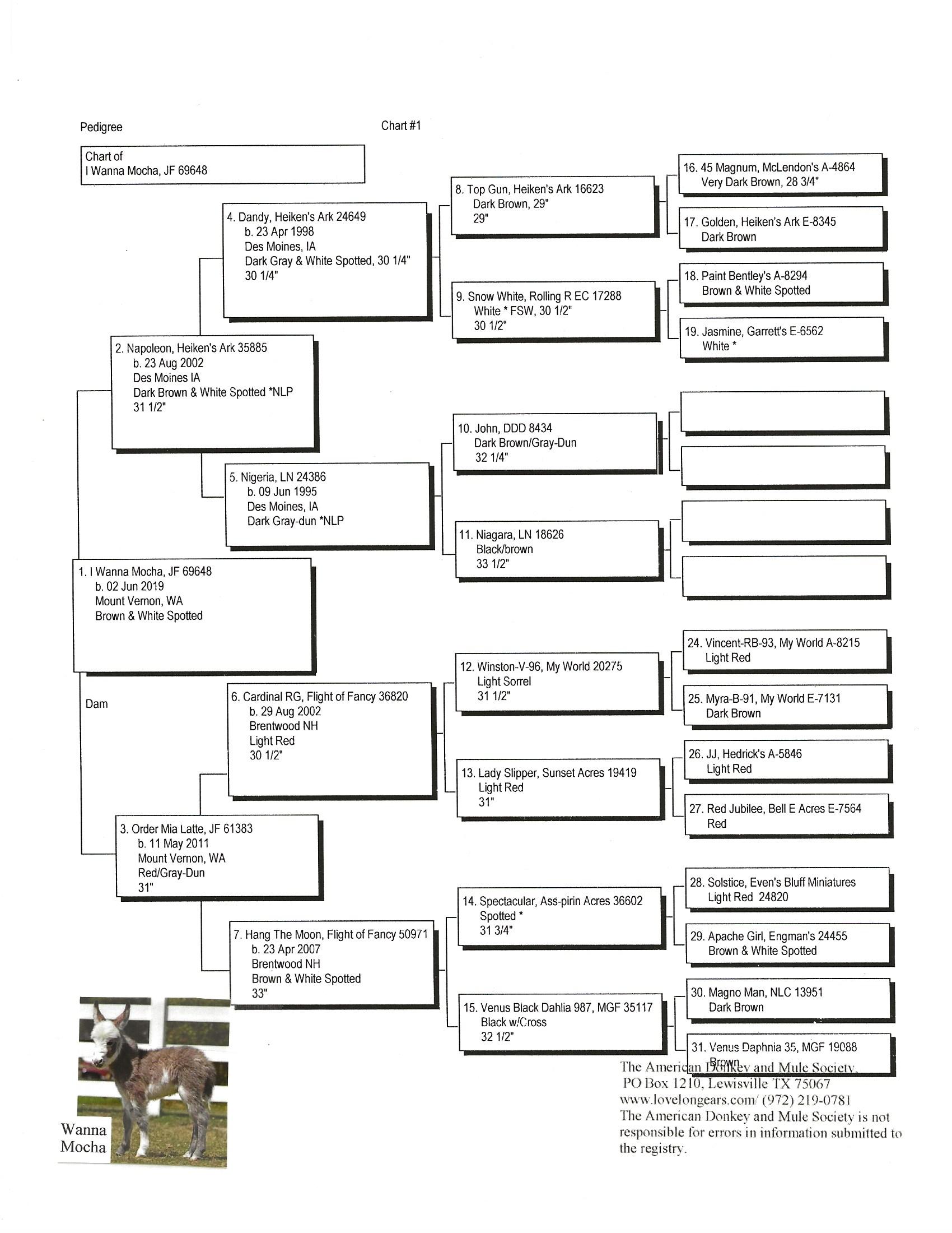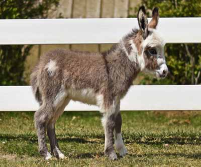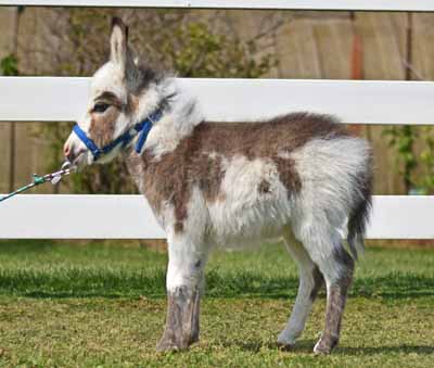 Mocha is a beautiful, sweet, and tiny girl. It's exciting to see the positive results of two generation of my breeding program. Her grandmother did very well as a show donkey and happens to be my favorite girl. She came from a leading breeder in New Hampshire, Selecting Mocha's name was easy due to her mother's name, "Order Mia Latte". Who wouldn't want "I Wanna Mocha"! Her color is a combination of white. grey and light brown. Mocha's full sister was sold to a breeding farm in Texas. $3,200.00 Sold to BC