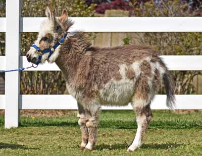 click here for google language translator Miniature donkeys are the most entertaining and loveable pet imaginable! I strive to raise healthy happy foals with loving temperaments, correct conformation, and proven bloodlines. Color is a bonus. Please keep in mind there are very few spotted foals born in the US every year. My foals are handled daily. Each foal is halter broke and started on trail obstacles. Donkeys are herd animals and do best when paired with another donkey. I will work with you on payments and accept Paypal. I am committed to raising high quality donkeys that will be a great addition to your family as a pet and/or show and breeding prospect or if your thinking about starting your own breeding operation click here and we can assist in that as well. When you inquire about purchasing a donkey I will tell you the whole history, provide current pictures and a unedited private email video, where fancy edited videos can be misleading.We will no longer be measuring the babies unless you request, because it can be misleading(at times the taller babies tend to be the smallest donkeys) See my Donkey Purchase Plan Several foals will be available