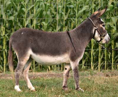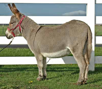32" Gray Kisses is the type of jennet that will be a true asset to a serious breeder's herd. Her dam and grand dam are an intregal part of our herd. Kisses is heavy boned, wide, and has great legs.