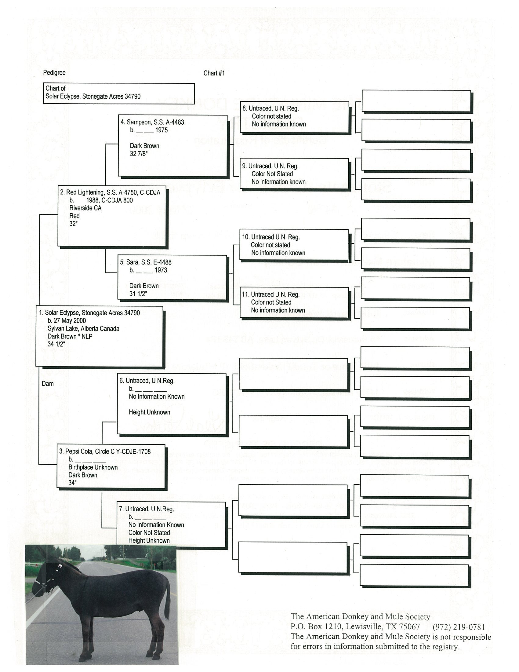 Circle C Pepsi Cola, 34" Black w/Cross Click to enlarge AMDS complete Pedigree Solar is home to stay. We are so happy to have had a once in a lifetime opportunity to purchase this well known gelding from Kathy Loudamy. Solar has a long list of show accomplishments including many national halter, performance, and year end gelding high points. He is so smart, willing, and sweet that we are quickly becoming bonded to him. On his trip to Washington we were told he seemed so smart that he could have driven the truck himself! Now he can teach us a few things about showing in performance classes. 2012 Pacific Northwest Miniature Donkey Classic - Champion High Point Non Driving 2011 Wine Country Miniature Donkey Classic- Reserve Champion High Point Non Driving 2010 NMDA National Show - Open Showmanship - 2nd 2010 NMDA National Show - 10 Year Old & Over Geldings - 2nd 2010 NMDA National Show - Open In Hand Jumping - 3rd Sold