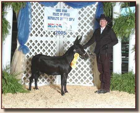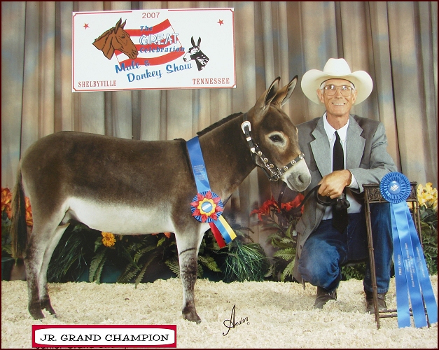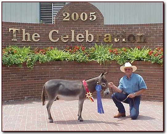 Top row: KKR Gone Hollywood, KKR High Roller, and KKR Shady Lady. Bottom: Shown by proud owner 8 year old Katie Randall, Little Miracles Farm, Walltrace,Tennessee,KKR High Roller was named 2007 ACOSA National Champion Gelding! And also won the NMDA Great Celebration Mule & Donkey Show Yearling Geldings. In 2008 Katie and KKR High Roller continue to bring home the rosettes! Katie's mother Maria said "Roller is so stocky and correct and his temperament is very gentle and loving".