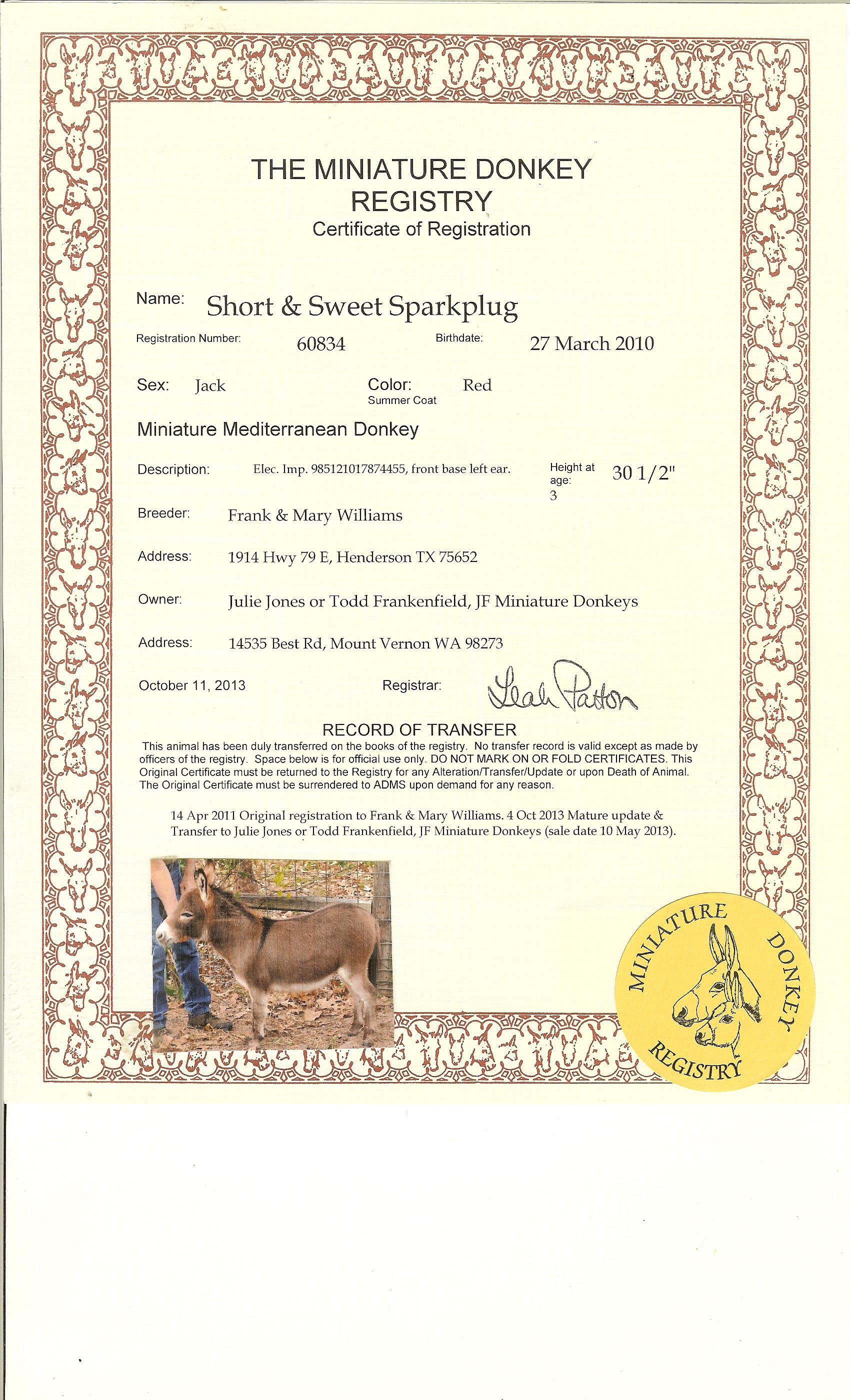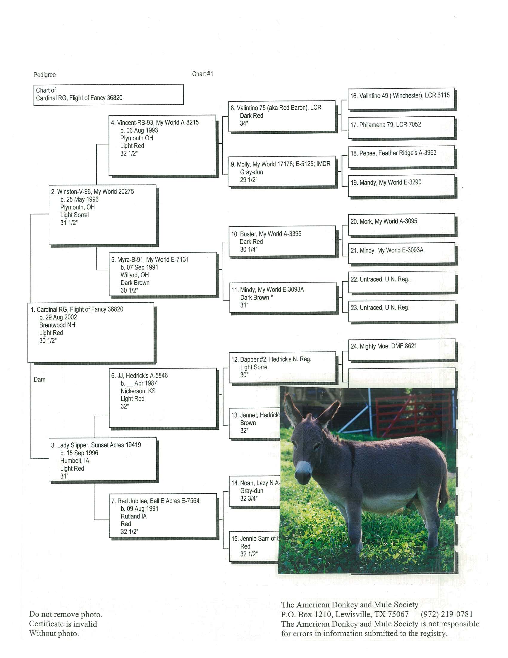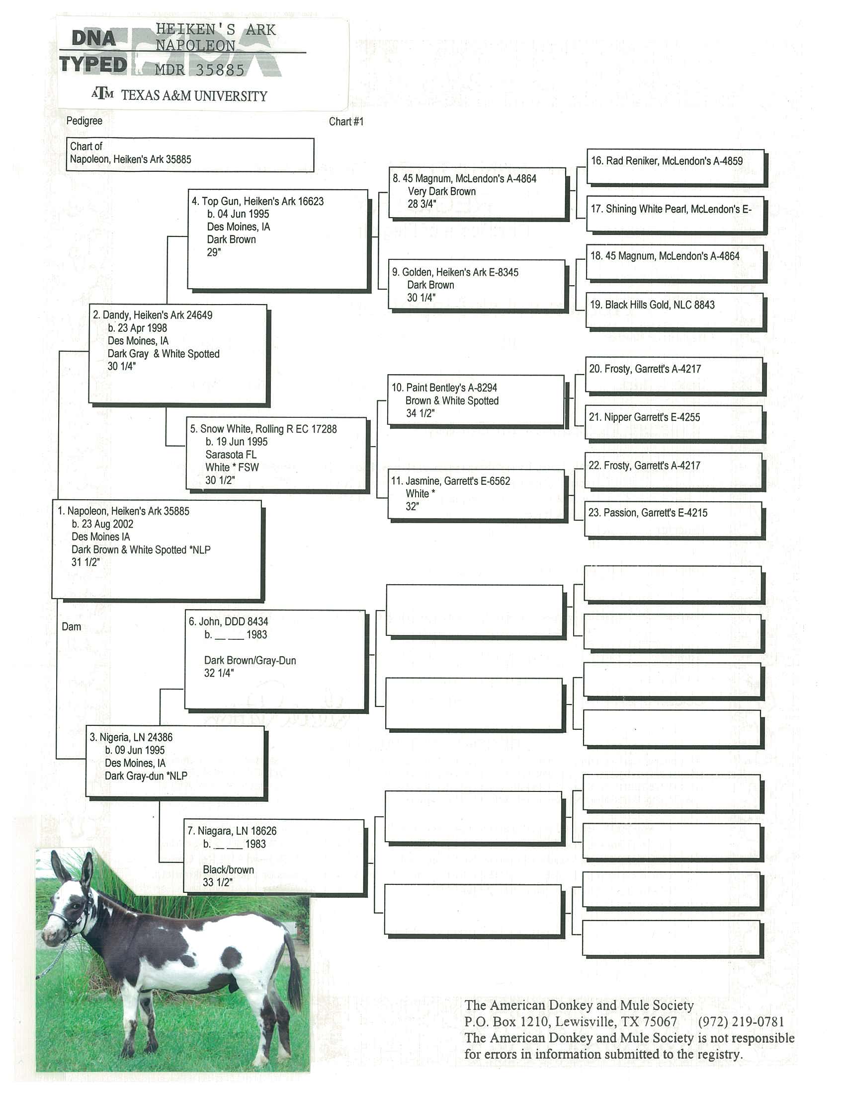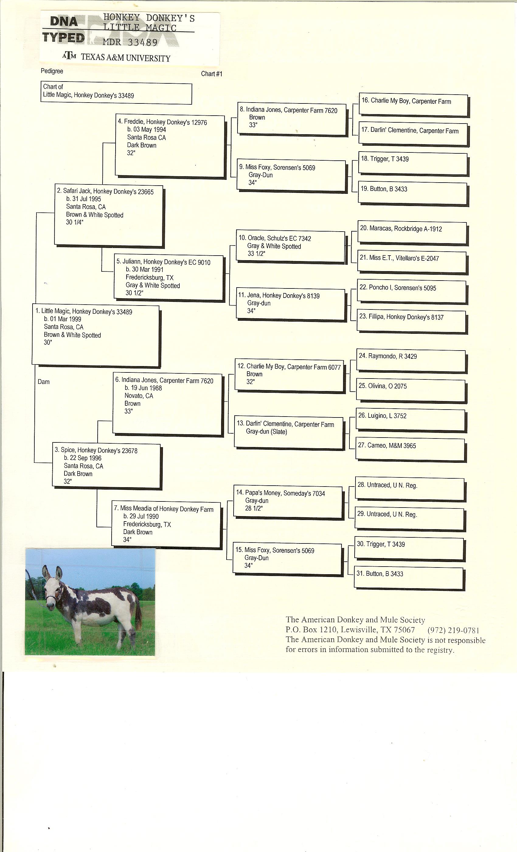 Donkey's Spice, 32" Dark Brown Click to enlarge AMDS complete Pedigree