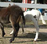 Dark Brown Lillian is a tiny and very correct, jennet. I love her legs and width. She's one week old in these photos and this was the first time she went outside due to our rainy weather. I will take more photos soon. Lillian has an impressive pedigree. This is the first foal for new mom, Lottie Da who is out of a Red Lightning daughter out of a Deperado daughter. Sire and Dams Pedigree |