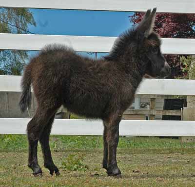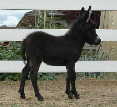 Acres Breanna, 33.5" Black This is one of the nicest jacks that's been born here at the farm. He has a wide chest, great legs, gorgeous head, and a fun look at me attitude. He is a full brother to the beautiful dark spotted jennet, JF Chantilly Lace that now resides in Nevada. I feel he will shed out much darker than his current baby coat. Chantilly Lace was this color as a newborn. His dam is a full sister to well known jacks Sunset Acres Hoops, and Sunset Acres Russion Czar. She is also a maternal sister to national champion Sunset Acres Smart Derby. Stay tuned for his name. It will be a fun one. Sire and Dams Pedigree Sold |