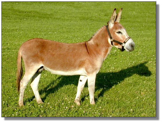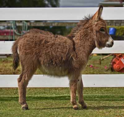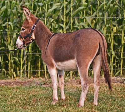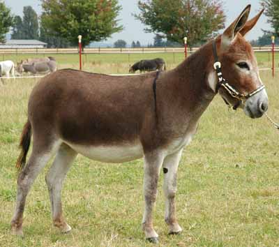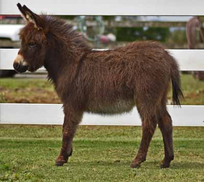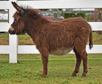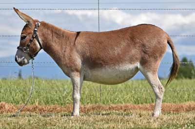 Light Red If you love gorgeous red donkeys with all the bells and whistles here's your girl. Genie is staying small, drafty, has great legs, a fun loving attitude, and fantastic pedigree. Her maternal sister won the yearling jennet class at the 2012 national show and is now living in a breeding herd in France.