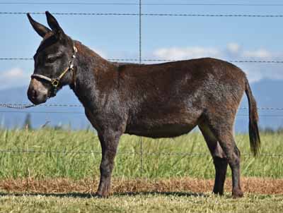 3 time NMDA RESERVE CHAMPION HALTER JENNET Bonnie is the dam of the following foals: 1. JF For A Few Dollars More (by QM Half Dollar) 2012 dark brown jack 2. JF Rumor Has It (by Short and Sweet Sparkplug) 2014 gray nlp jennet 3. JF Intrigue (by Heiken's Ark Napoleon) 2018 Brown jennet