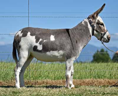 NMDA Yearling Jennets - 2nd 2. JF Absolutely Spotless (by Heiken's Ark Napoleon) 2012 black nlp jennet 3. JF Mr. Gunsmoke (by Heiken's Ark Napoleon) 2013 slate gray nlp jack 4. JF Trixie (by Honkey Donkeys Little Magic) 2014 Spotted jennet 5. JF Kojak (by Heiken's Ark Napoleon) 2016 Spotted jack 6. JF Sherman (by Heiken's Ark Napoleon) 2017 Brown nlp jack 7. JF Charlotte (by Heiken's Ark Napoleon) 2019 Grey NLP jennet 8. JF Polka Dottie (by Heiken's ARk Napoleon) 2020 dark spotted jennet Bred to Quarter Moon Flashbang - Due April 2022