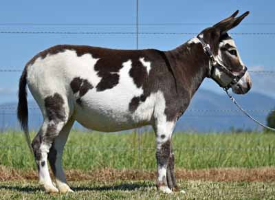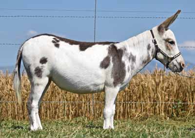 Dams Show Record 2009 Oregon Mule and Donkey Show 1st NMDA Foals 2010 Oregon Mule and Donkey Show 1st NMDA Yearling Jennets 2010 Oregon Mule and Donkey Show NMDA Junior Champion 2010 NMDA National Show - 1st Yearling Jennets 1. JF Shania (by Heiken's Ark Napoleon) 2020 Red & White Spotted Jennet