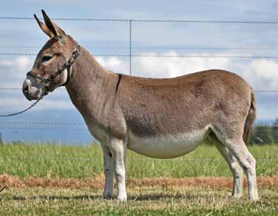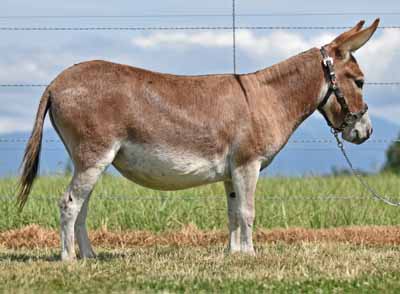 Cinderbelle is just gorgeous. She has a beautiful head, exceptionally straight legs, tracking perfectly, and she shows lots of width in her chest. I am very happy to own this wonderful Peppercorn daughter. Her foals have been winners throughout the U.S., Canada, and Europe! Two of her Jacks