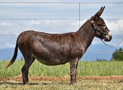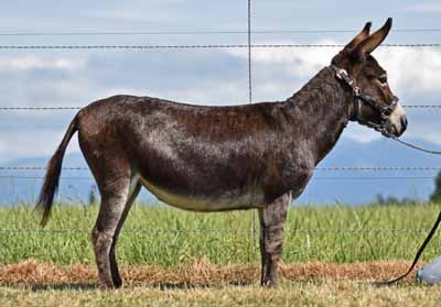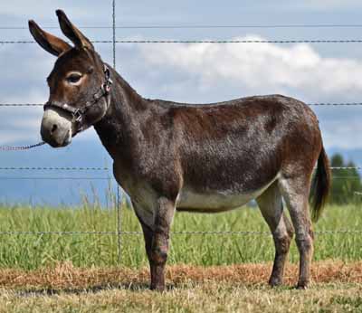 Dark Gray Jennet w/NLP Click to enlarge AMDS complete Pedigree Pearl's dam was purchased in foal and Pearl was her first foal. I am very pleased with both of them. Pearl was listed for sale, but I just can't part with her. She has become best friends with Apple and it was very exciting that Apple was first and Pearl was second in a large class at the 2010 NMDA National Show in Red Bluff, California. Pearl had only been a yearling for just a few weeks. Show Record 2010 National NMDA Yearling Jennets - 2nd 2010 Oregon Mule & Donkey Show - 2nd 2012 National NMDA Two Year Old Jennets - 2nd 1. JF Porter (by Flight of Fancy Cardinal RG) 2016 brown jack 2. JF The Wizard of Awes (by Short and Sweet Spark Plug) 2018 Dark Brown Jack NLP Bred to Quarter Moon Flashbang - Due April 2022