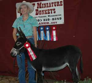 I have been looking forward to this little girl out of our Star's War daughter by the famous Top Dollar which like his sire Fistfull of Dollars was a National Champion Jack and best of Breed. Rosita's sire boasts a show record that includes National Champion NMDA titles including National Champion Jack, National Champion Best of Breed, and National Champion Coon Jumping. My thanks to Cindy Benson for the opportunity for me to lease Dollar to breed to Rosie and my other great jennet Engman's Lottie, and to Carolyn and Pete Christian at Quarter Moon Ranch for breeding, raising and promoting the great Top Dollar. This little girl will no doubt go to a great show home. In 2012 I sold a jennet by Rosie to France named JF Victoria Secrets. Her show record speaks for itself. 2011 Oregon Mule and Donkey Experience - 1st Show - Placed First Place out of eight in the NMDA yearling jennet class. 2012 National NMDA Yearling Jennets - 1st Sire and Dam Short Assets Rosita's Show Record 2008 Oregon Mule & Donkey Show 2 & 3 Year Old Jennets - 3rd 2009 Oregon Mule & Donkey Show 2 & 3 Year Old Jennets - 1st